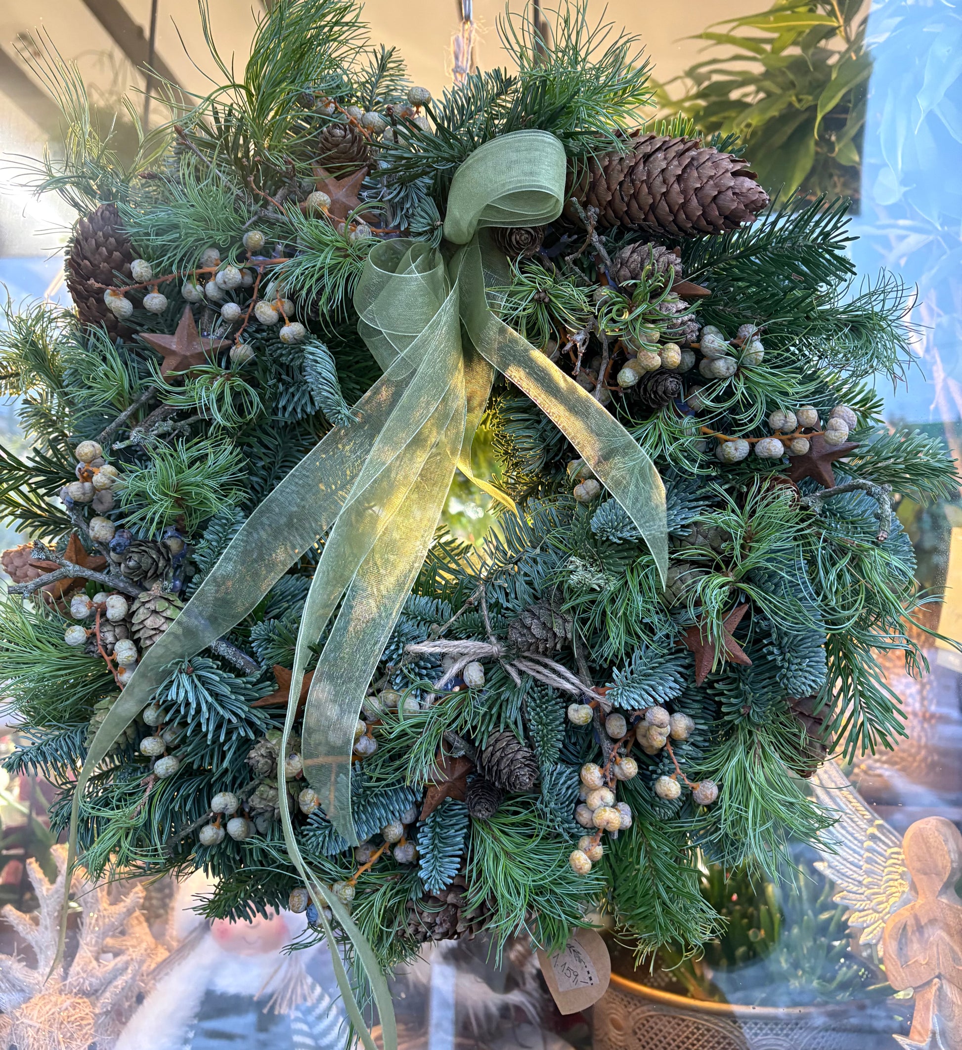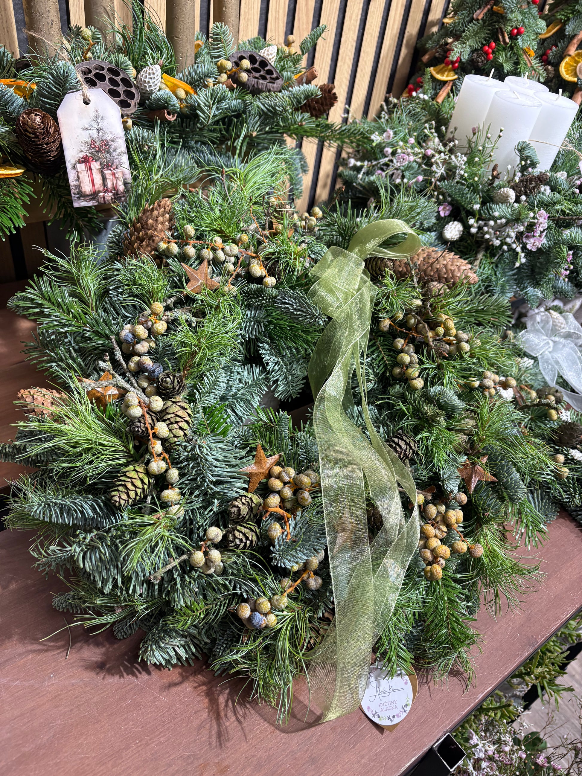 Vneste do svého domova kouzlo zimy s naším přírodním zimním věncem. Ručně vyráběný z čerstvého jehličí a dekorativních větviček, které společně vytvářejí harmonický a útulný vzhled. Každý věnec je originál a přináší domů vůni lesa i teplou atmosféru zimních svátků.
